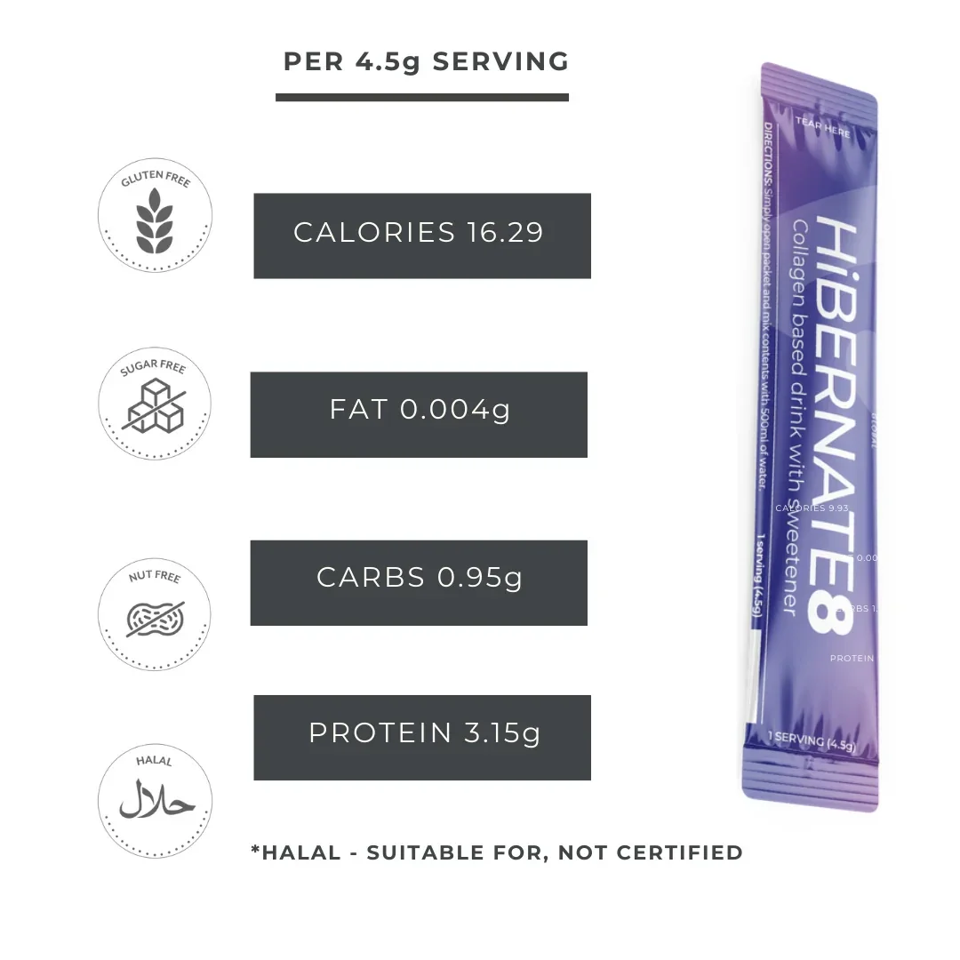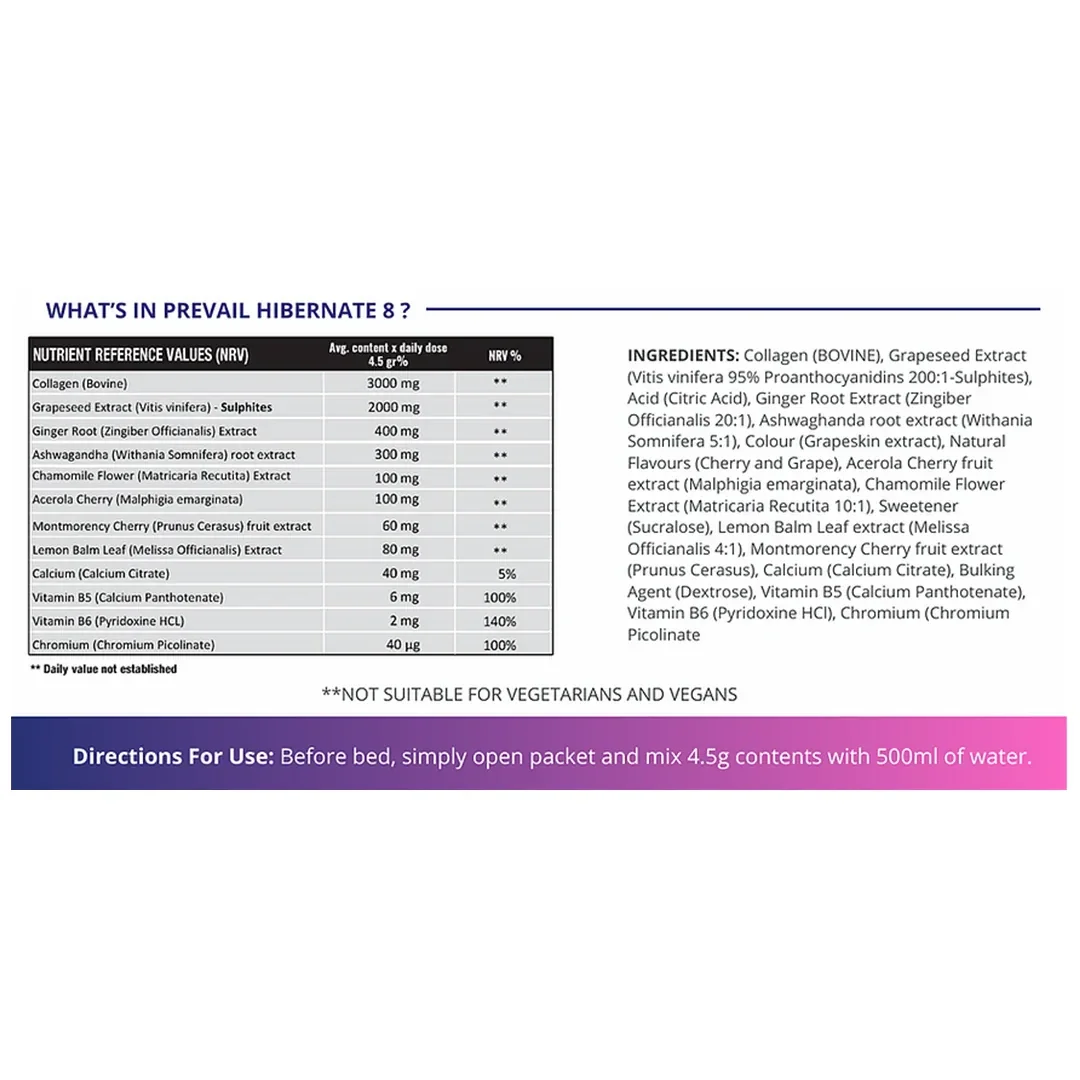 Ondersteun je lichaam met Hibernate 8,een krachtige formule met Collageen,vitamine B5,Vitamine B6,Gemberwortelextract,Druivenpitextract en Ashwaganda.Deze zorgvuldig samengestelde ingredienten dragen bij aan een gezond lichaam,herstelproces en een diepe,ontspannen slaap.